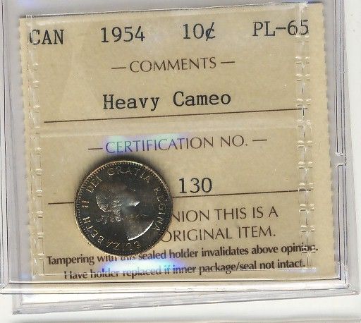 1954 10¢ ICCS PL65 Heavy Cameo.