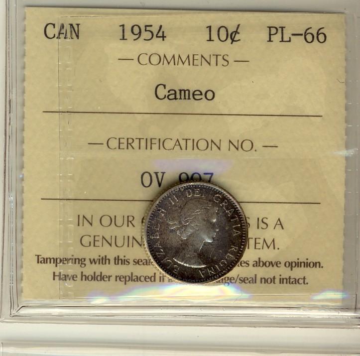 1954 10¢ ICCS PL66 Cameo. PQ toning.