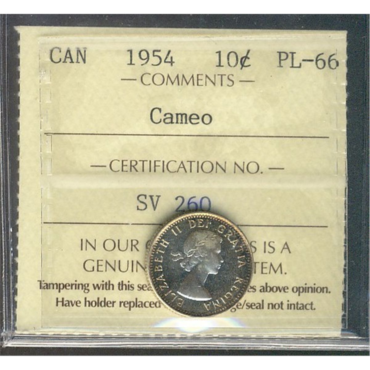 1954 10¢ ICCS PL66 Cameo.