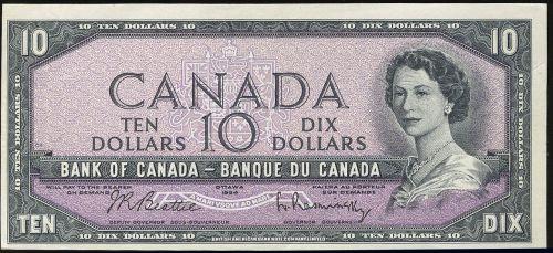 1954 $10 Missing both serial numbers. A very rare and quite elusive error note. Uncirculated.
