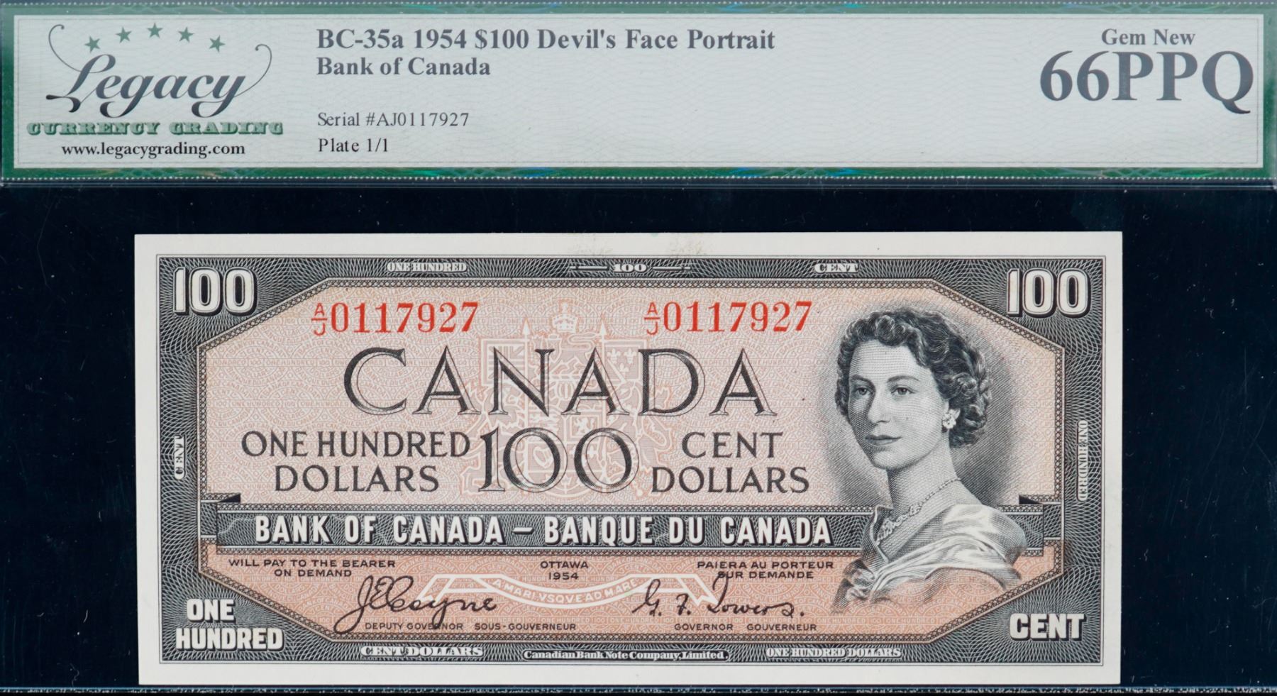 1954 $100 BC-35a #A/J0117927 Legacy Superb Gem Mint State-66PPQ