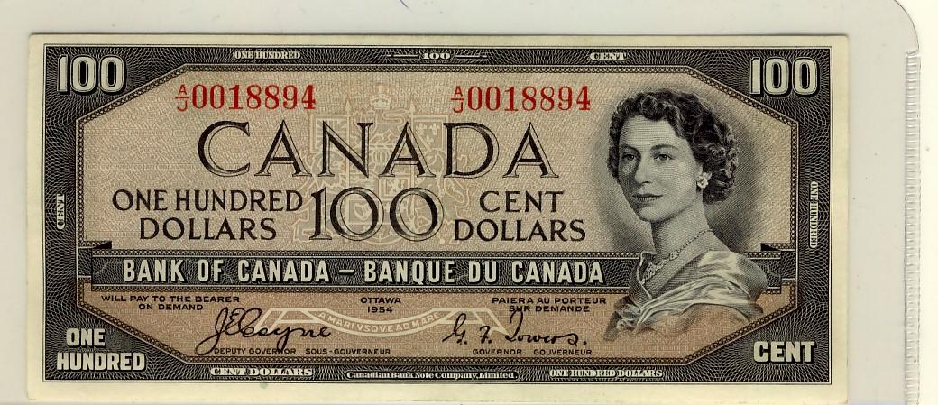 1954 $100 BC-35a #AJ0018894. Note grades EF/AU, looks better.