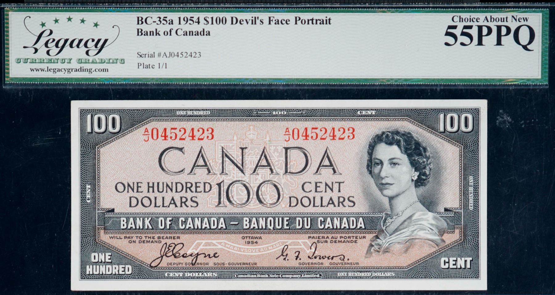 1954 $100 BC-35a #AJ0452423, Legacy Choice About Uncirculated-55PPQ. Devil's face