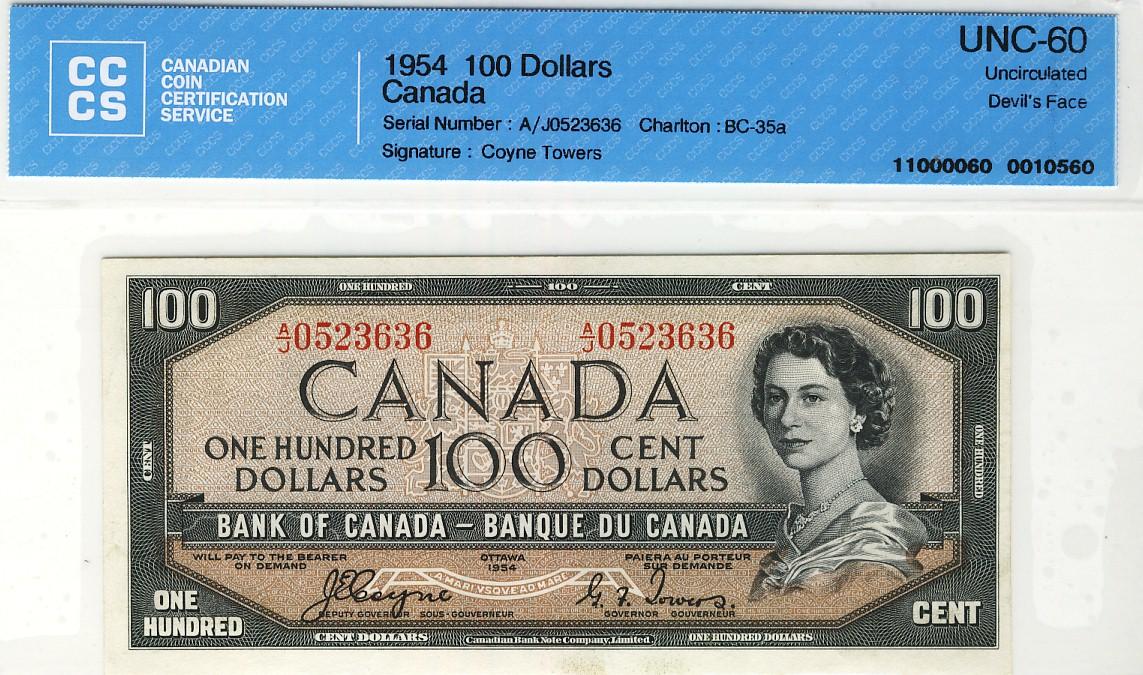 1954 $100 BC-35a #AJ0523636, CCCS UNC60.