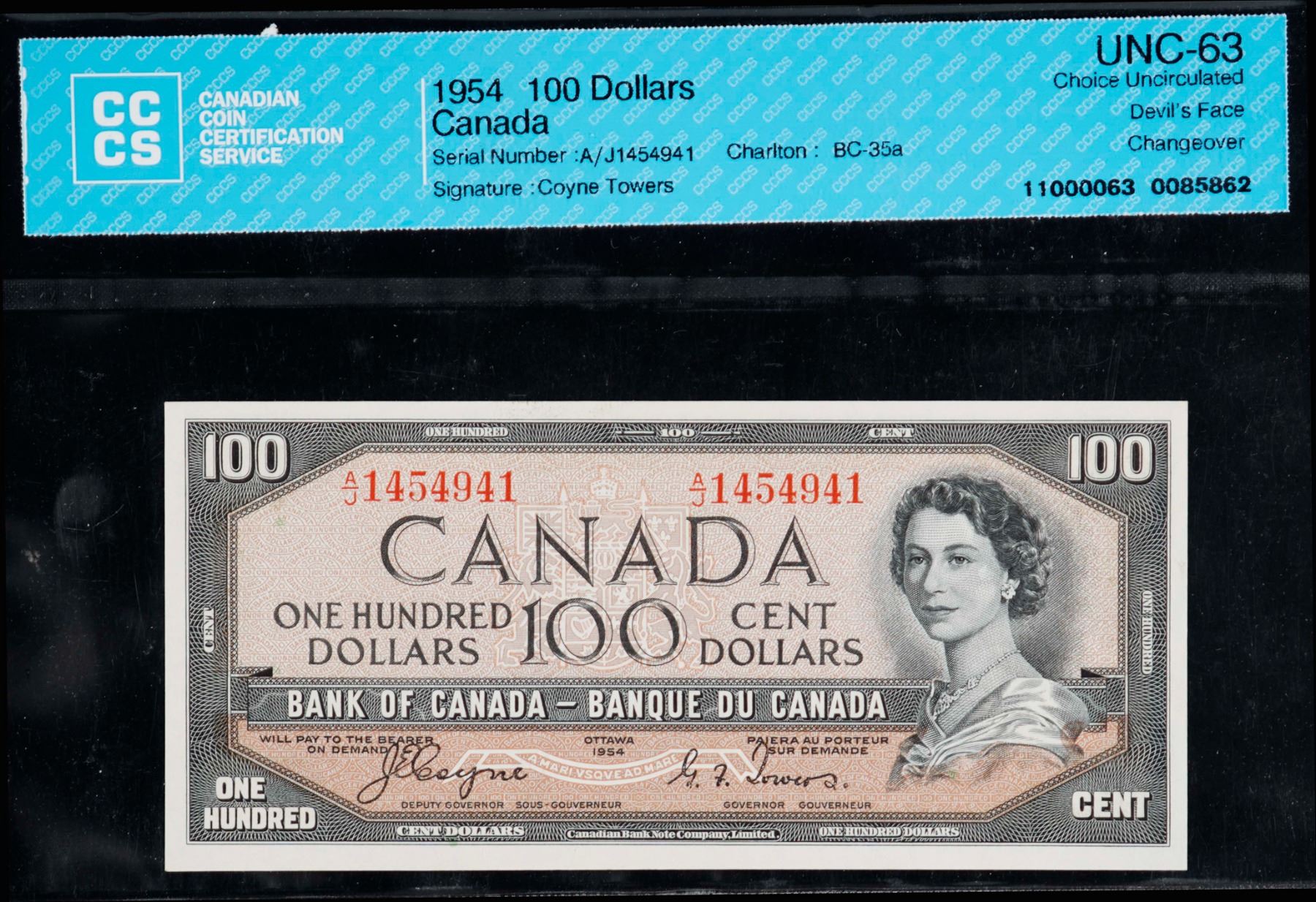 1954 $100 BC-35a #AJ1454941, CCCS Choice Uncirculated-63. Devil's face