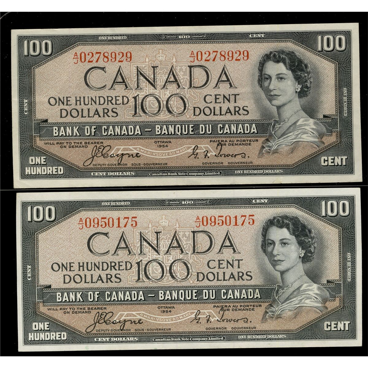 1954 $100 BC-35a EF+ & VF+. Lot of 2 notes.