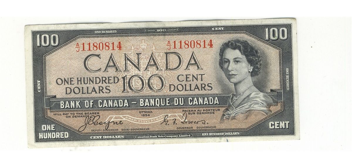 1954 $100 BC-35a S#:A/J1180814 DEVILS FACE. VF+