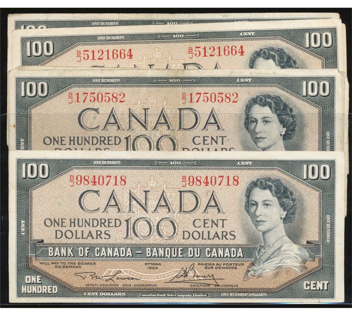 1954 $100 BC-43 Lot; includes 10 pcs F to VF.