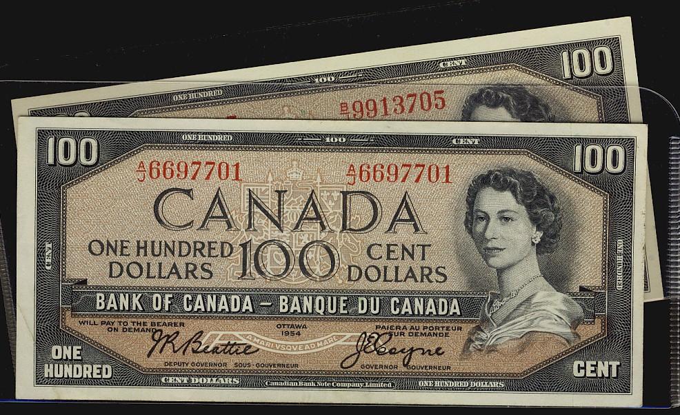1954 $100 BC-43a & BC-43c. Lot of two notes EF to AU.