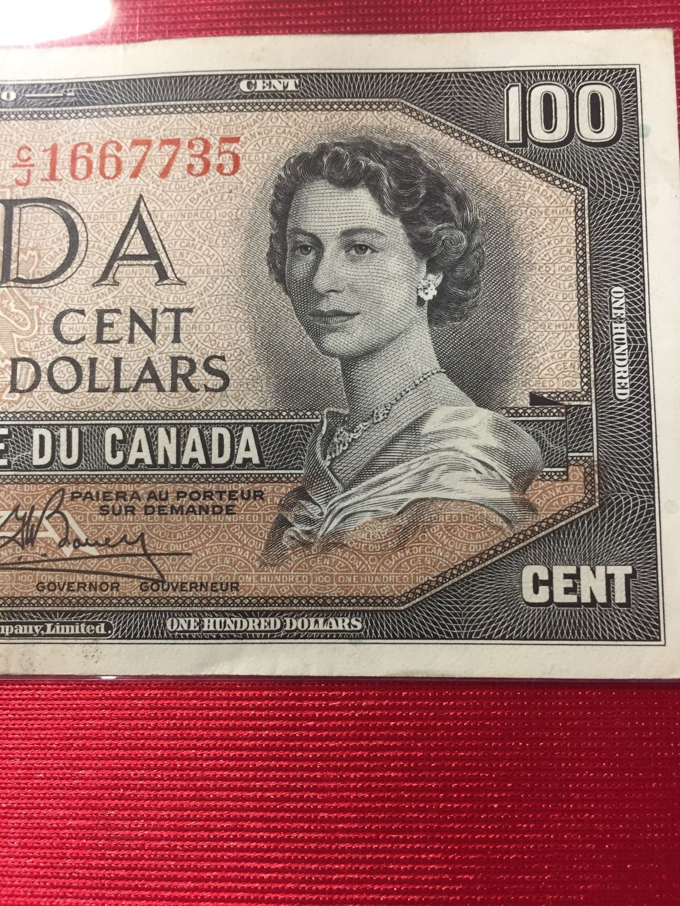 1954 $100 Bank of Canada Banknote in a Protective Sleeve