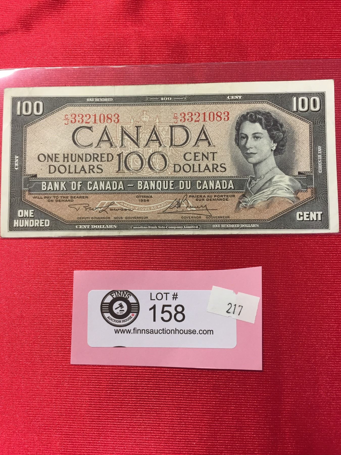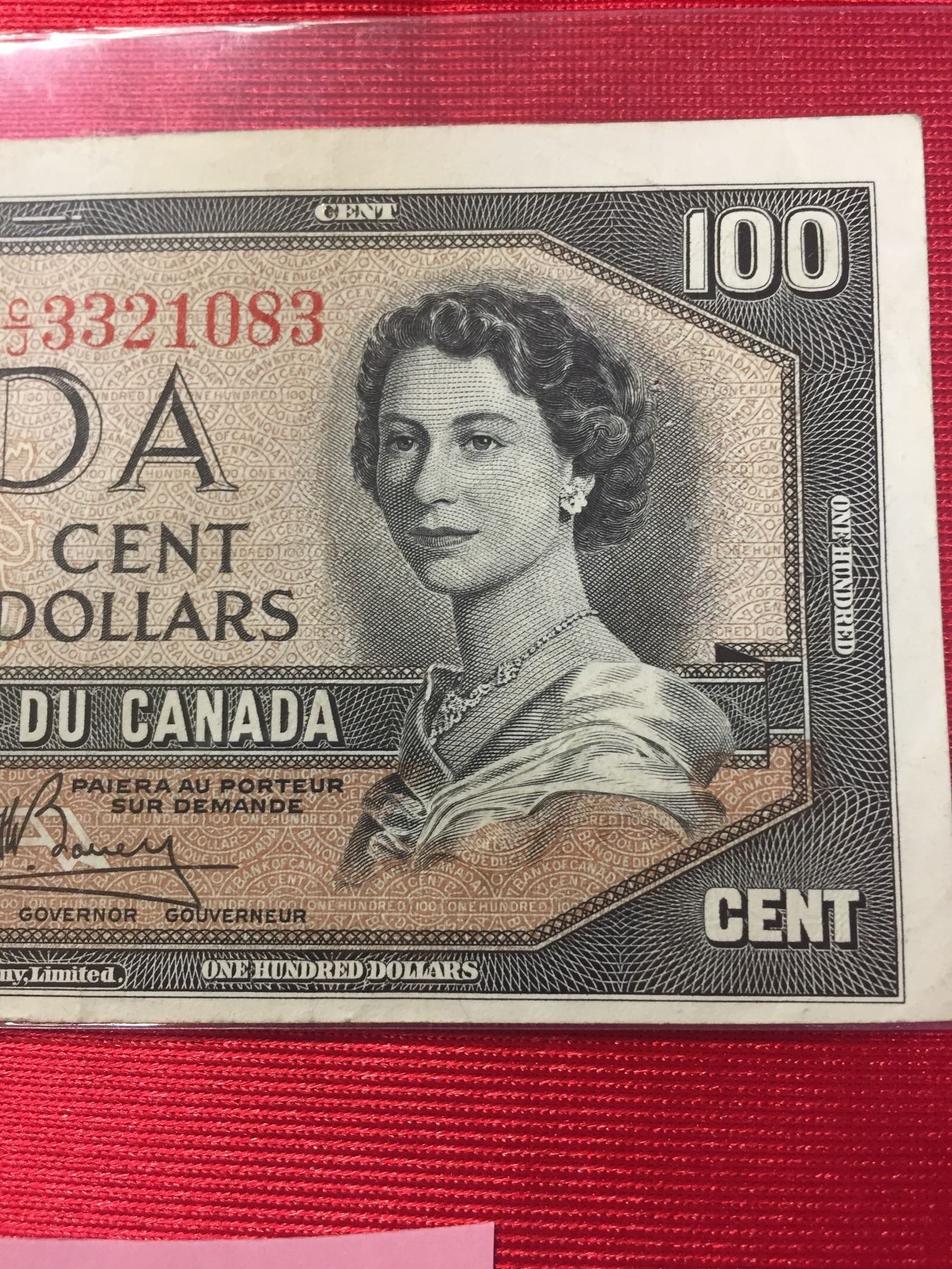 1954 $100 Bank of Canada Banknote in a Protective Sleeve