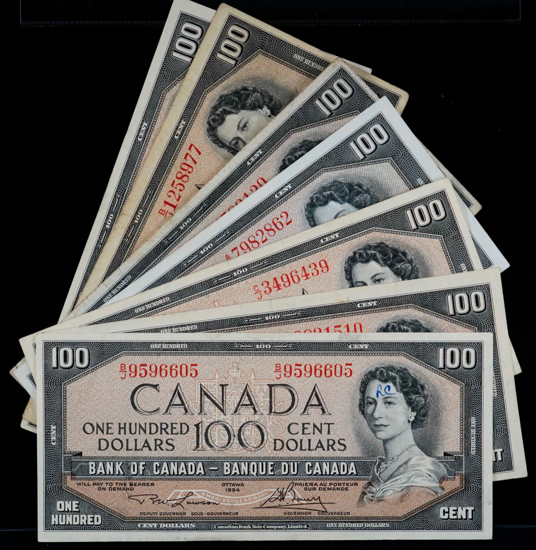 1954 $100 Lot; Includes various signatures. All F to VF-AU. Lot of 9 notes. A few with minor issues.
