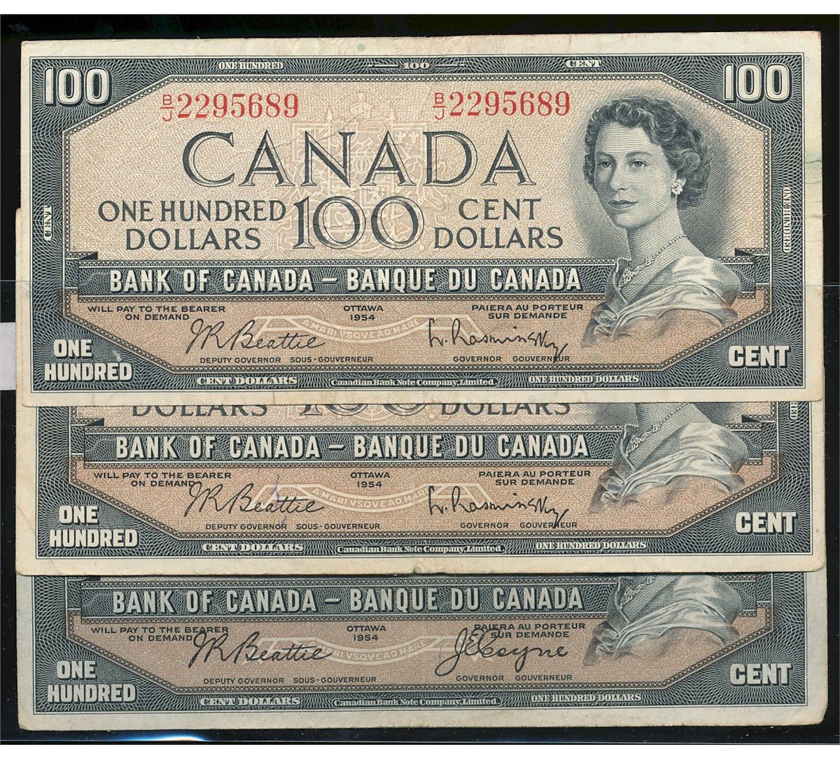 1954 $100 Lot; includes 3 pcs F to VF with minor issues.