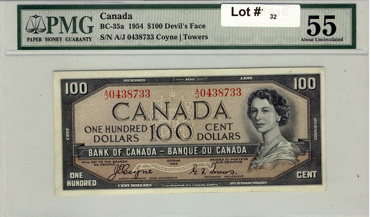 1954 $100 devil's face BC-35a A/J 0438733 PMG 55