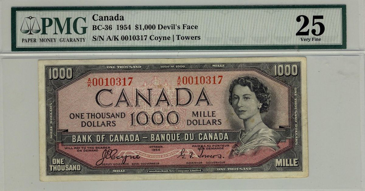 1954 $1000 BC-36 A/K0010317 PMG VF25. A lovely and bright example. Seldom offered.