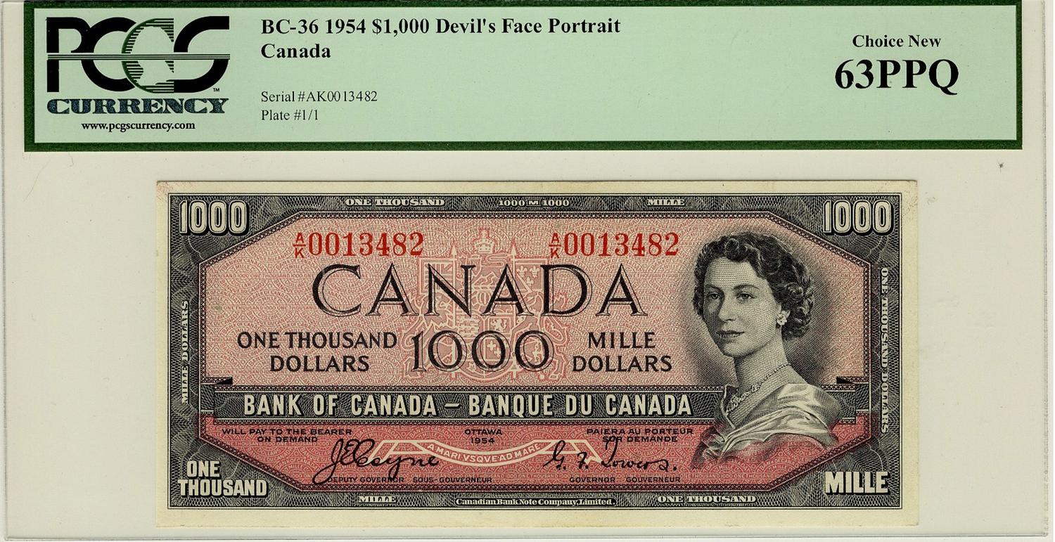 1954 $1000 BC-36 #AK0013482, PCGS CH UNC63PPQ. A superb example of this very sought after issue. The nicest example ever seen and handled by TCNC. Excessively rare and desirable. Despite all catalogues and expect strong bidding on this item.