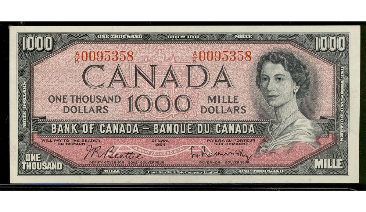 1954 $1000 BC-44c #AK0095358. Original AU with some light handling.