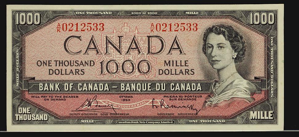 1954 $1000 BC-44c #AK0212533. AU-UNC example.