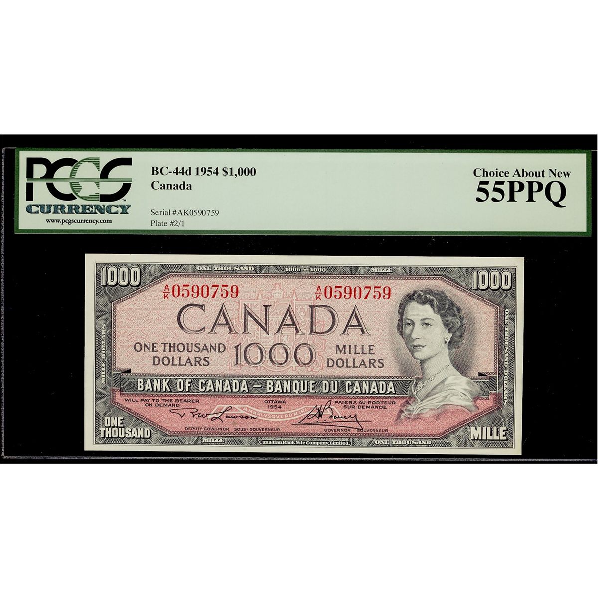 1954 $1000 BC-44d #AK0590759. PCGS AU55PPQ. A decent, bright and attractive example.