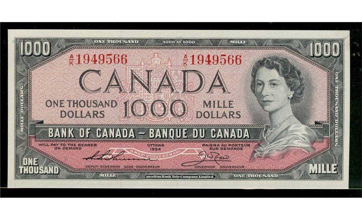 1954 $1000 BC-44e #AK1949566. Crisp original AU/UNC.