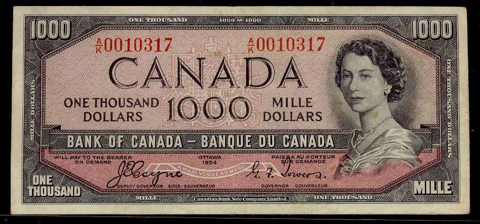 1954 $1000 DF BC-36 #A/K0010317. Difficult issue in any grade. VF.