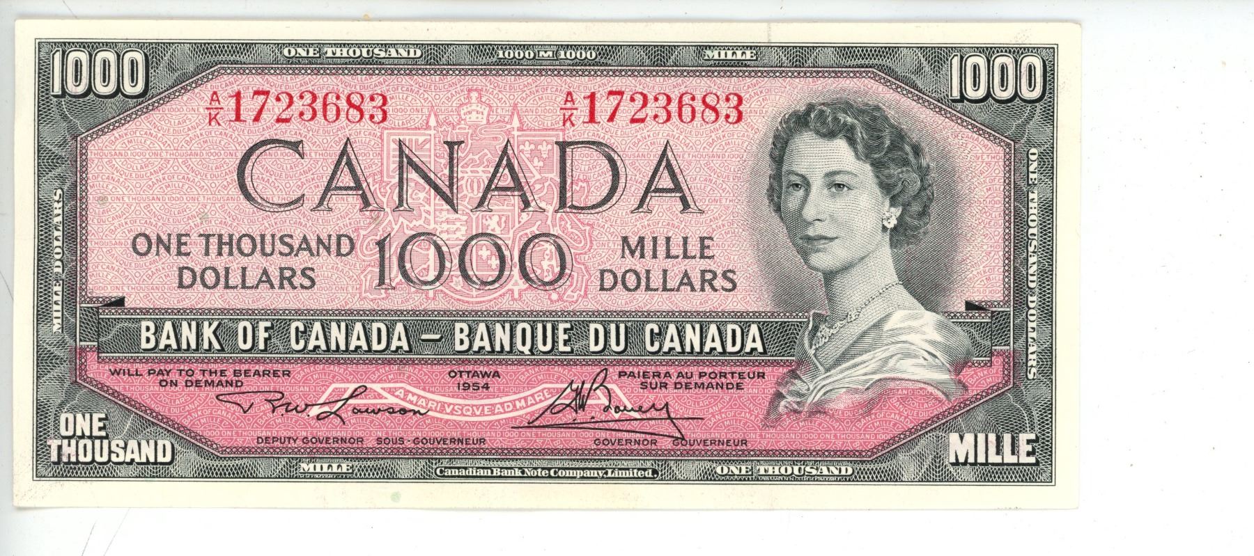 1954 $1000 Dollar Canada Bill A/K1723683 Sequential 1 of 8