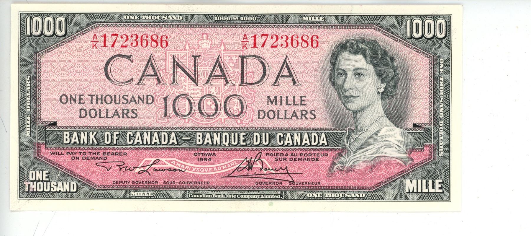1954 $1000 Dollar Canada Bill A/K1723686 Sequential 4 of 8