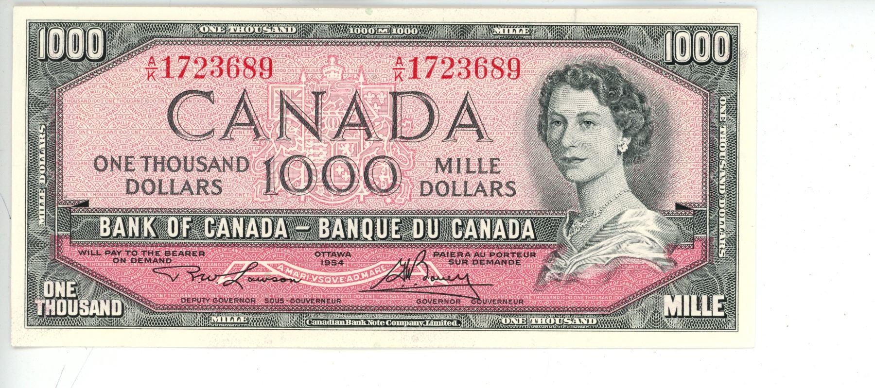 1954 $1000 Dollar Canada Bill A/K1723689 Sequential 7 of 8