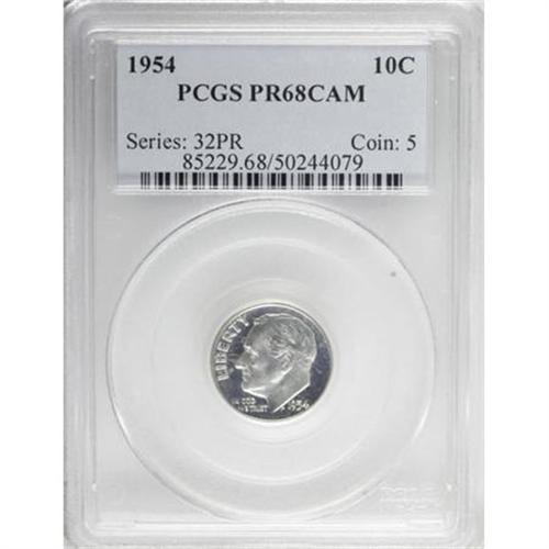 <B>1954 10C PR68 Cameo PCGS.</B></I> PCGS Population (0/0). NGC Census: (98/7). (#85229)<BR><BR><b>Shipping:</b> Coins & Currency (<a target="_blank" href="http://www.heritageauctions.com/common/shipping.php">view shipping information</a>\)