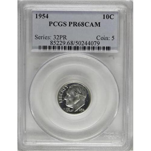 <B>1954 10C PR68 Cameo PCGS.</B></I> PCGS Population (0/0). NGC Census: (98/7). (#85229)<BR><BR><b>Shipping:</b> Coins & Currency (<a target="_blank" href="http://www.heritageauctions.com/common/shipping.php">view shipping information</a>)