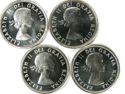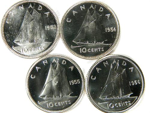 1954, 1955 and 1956, all Very Choice or Gem Proof Like with cameos. Plus 1953 Shoulder Fold, Choice Uncirculated with cameo. Four untoned pieces