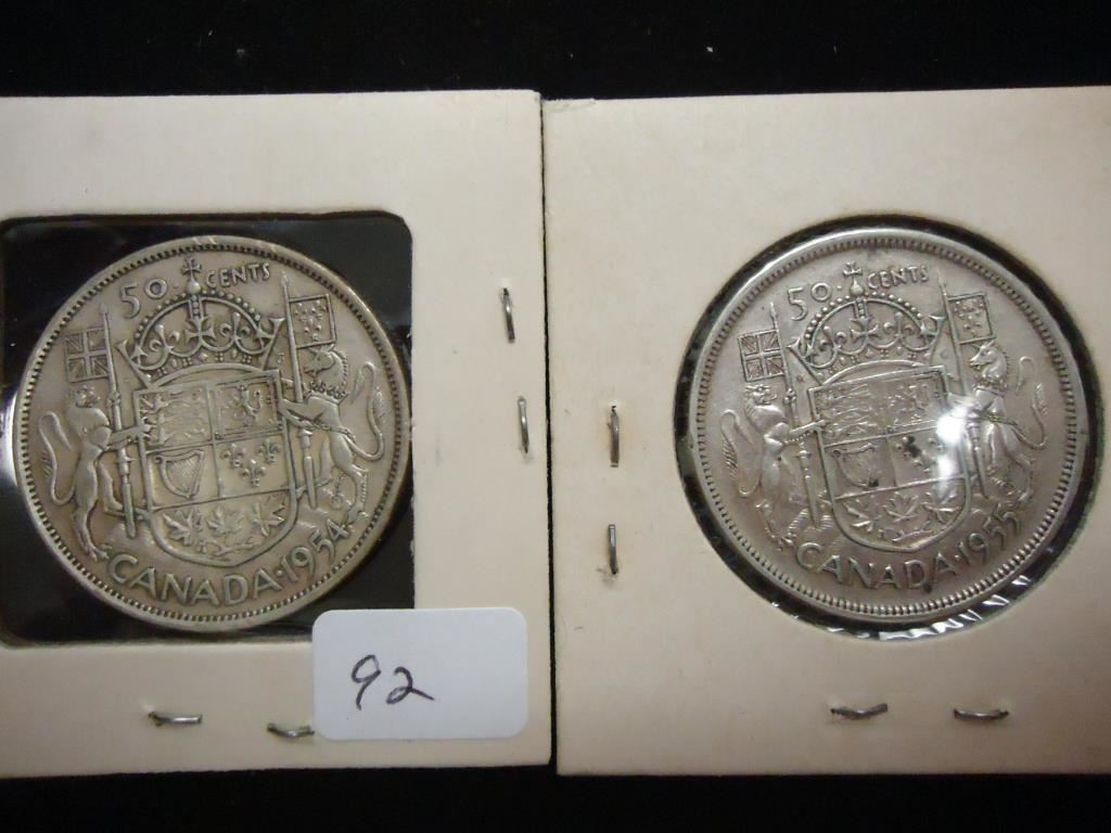 1954 & 1955 CANADA SILVER 50 CENTS