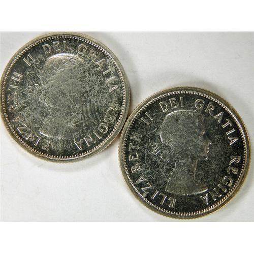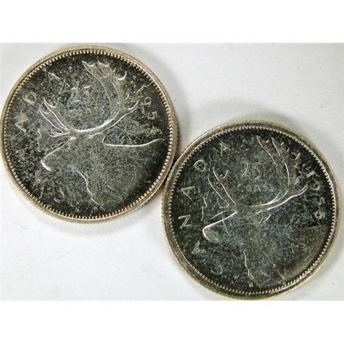 Canada Twenty-Five Cents 1954 and 1955, both Very Choice Cameo Proof-Like and both with pale toning