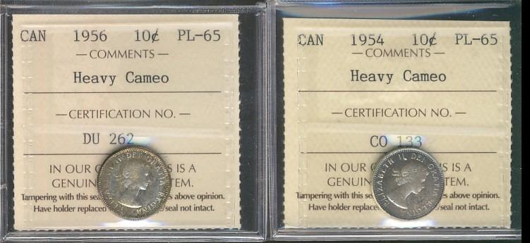 1954 & 1956 10¢ ICCS PL65 Heavy Cameo.