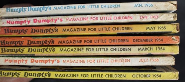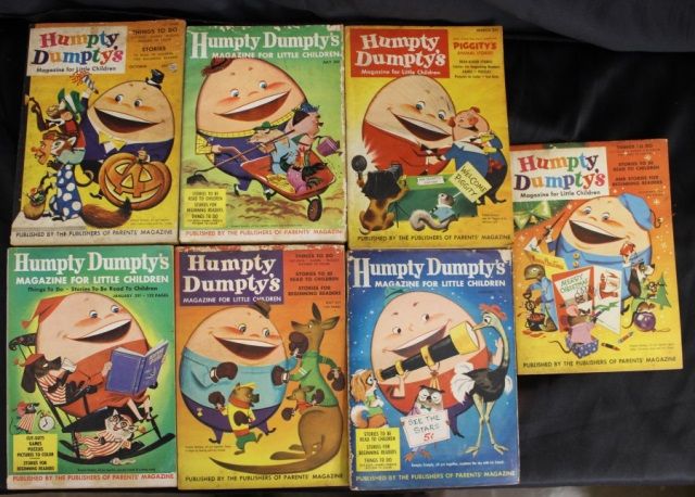 Lot of seven Humpty Dumpty is a bimonthly American magazine for children 5 to 7 years old that takes its title from the nursery rhyme of the same name. The magazine features short stories, poems, nonfiction articles, games, comics, recipes,