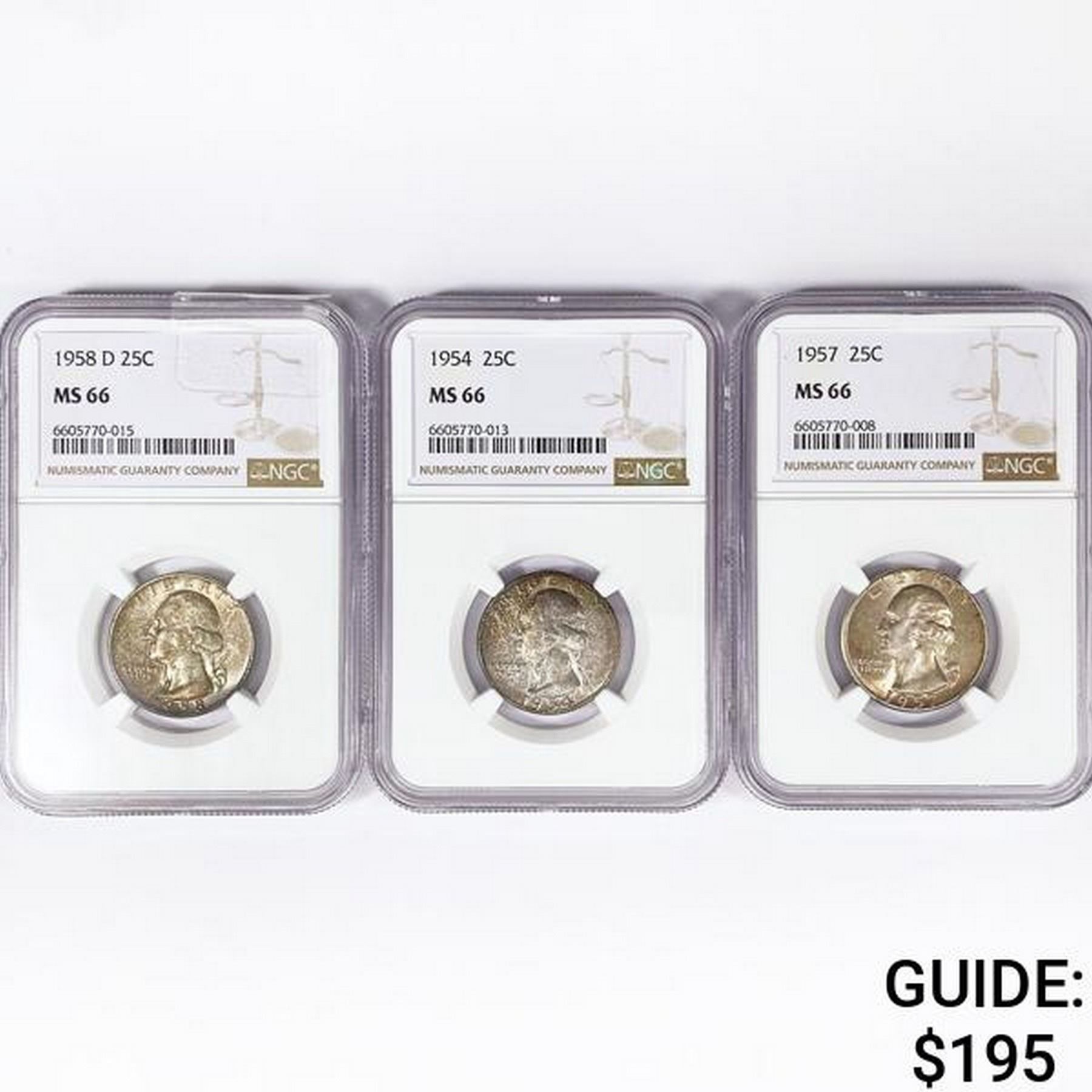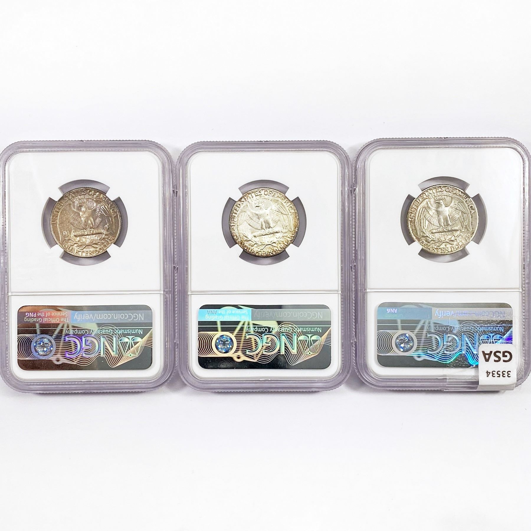 1954-1958 Set (3) Wash Silv Quarters NGC MS66
