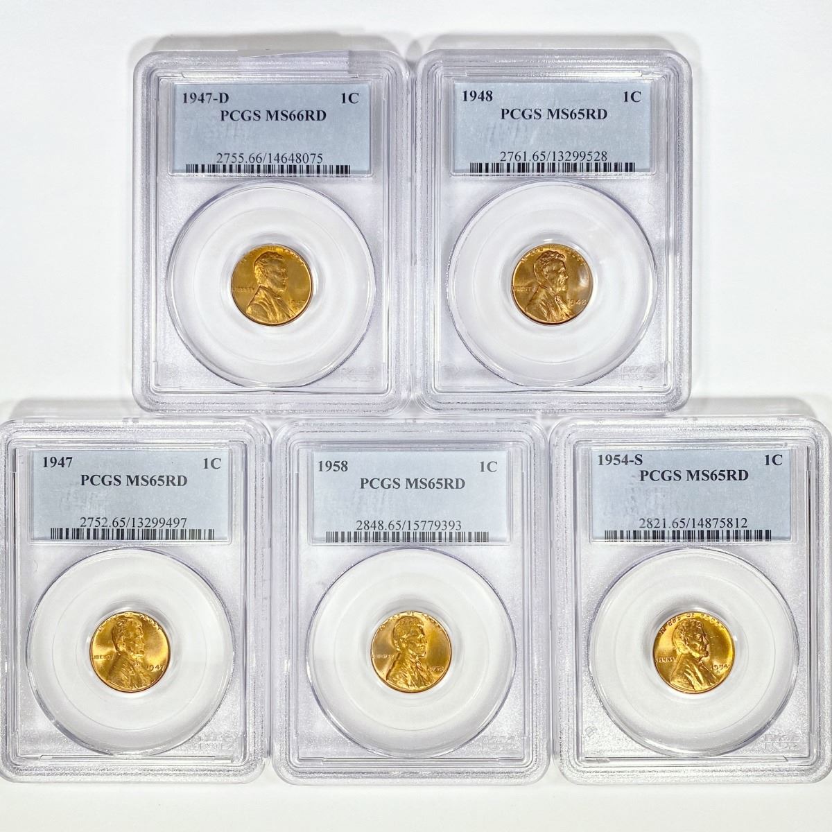 1954-1958 Set (5) Wheat Cent PCGS MS RD