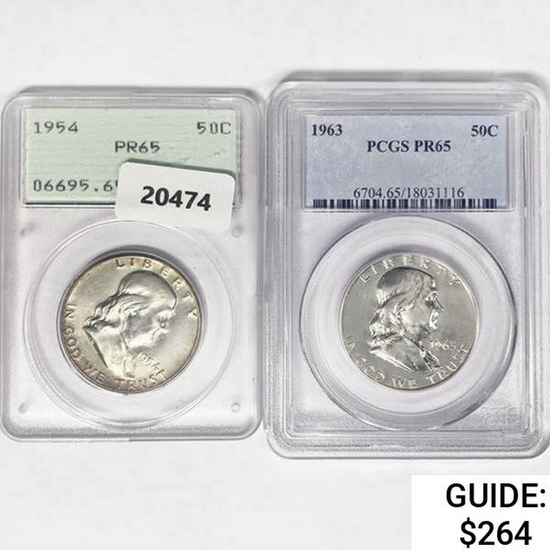 1954, 1963 Set [2] Franklin Half Dollar PCGS PR65