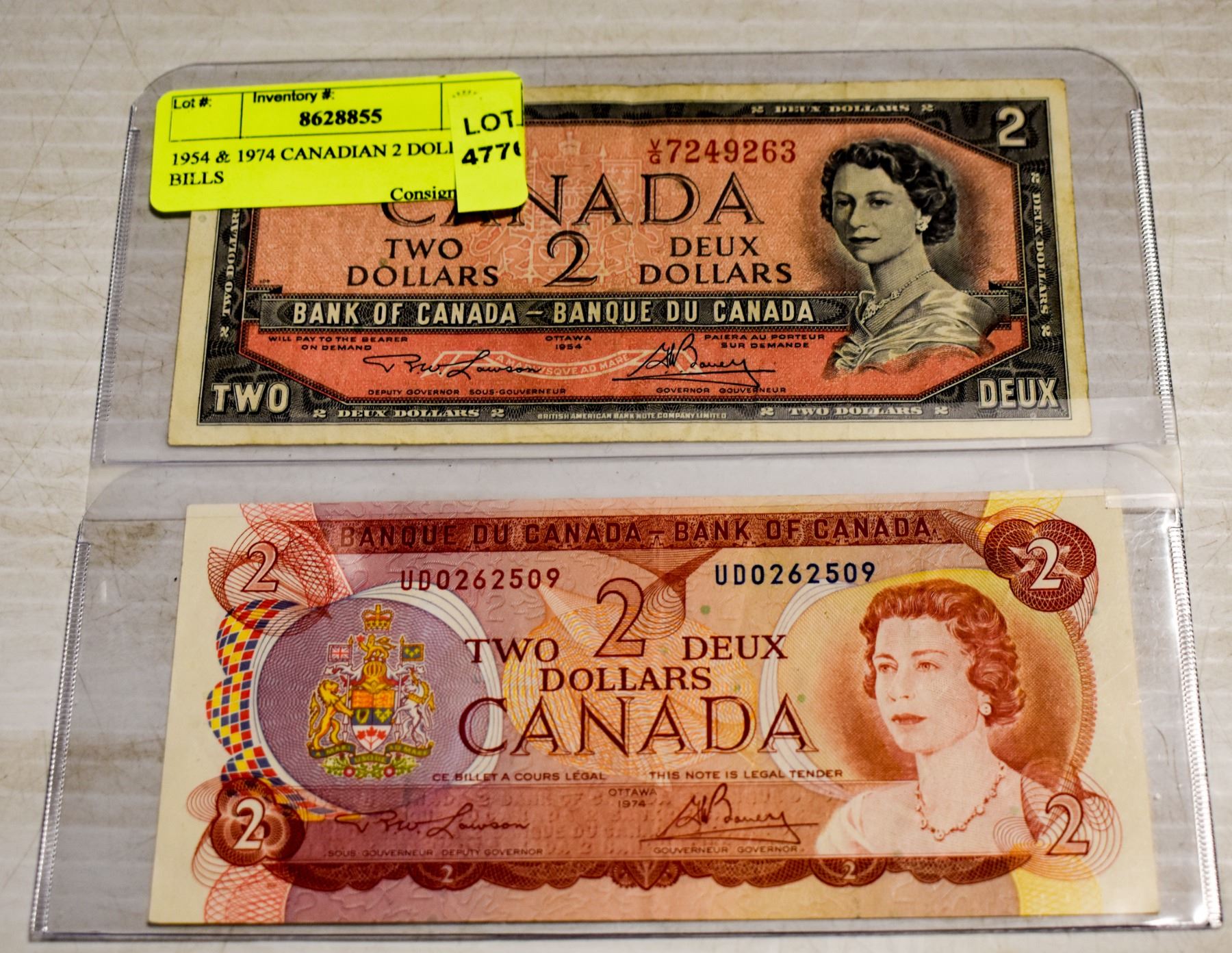 1954 & 1974 CANADIAN 2 DOLLAR BILLS