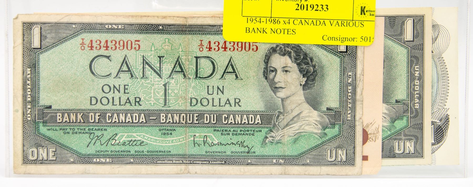 1954-1986 x4 CANADA VARIOUS BANK NOTES