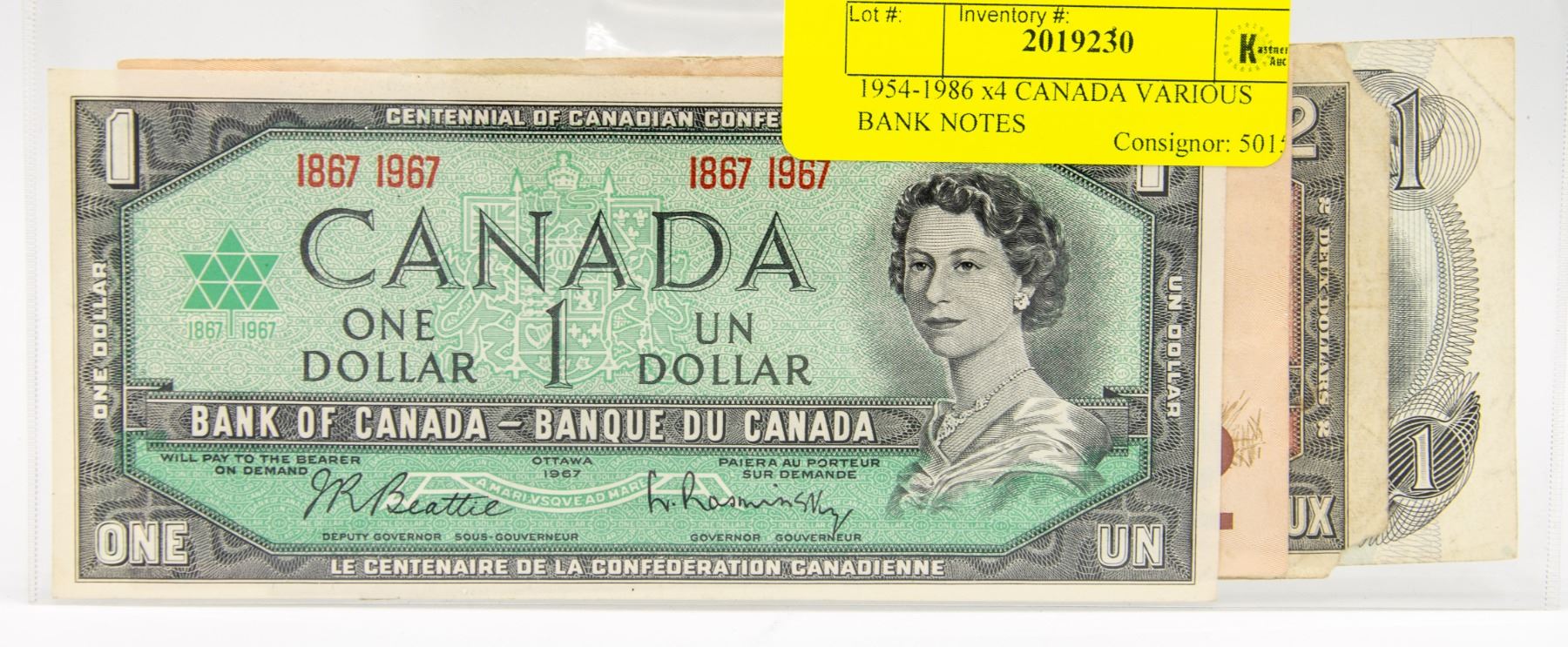 1954-1986 x4 CANADA VARIOUS BANK NOTES