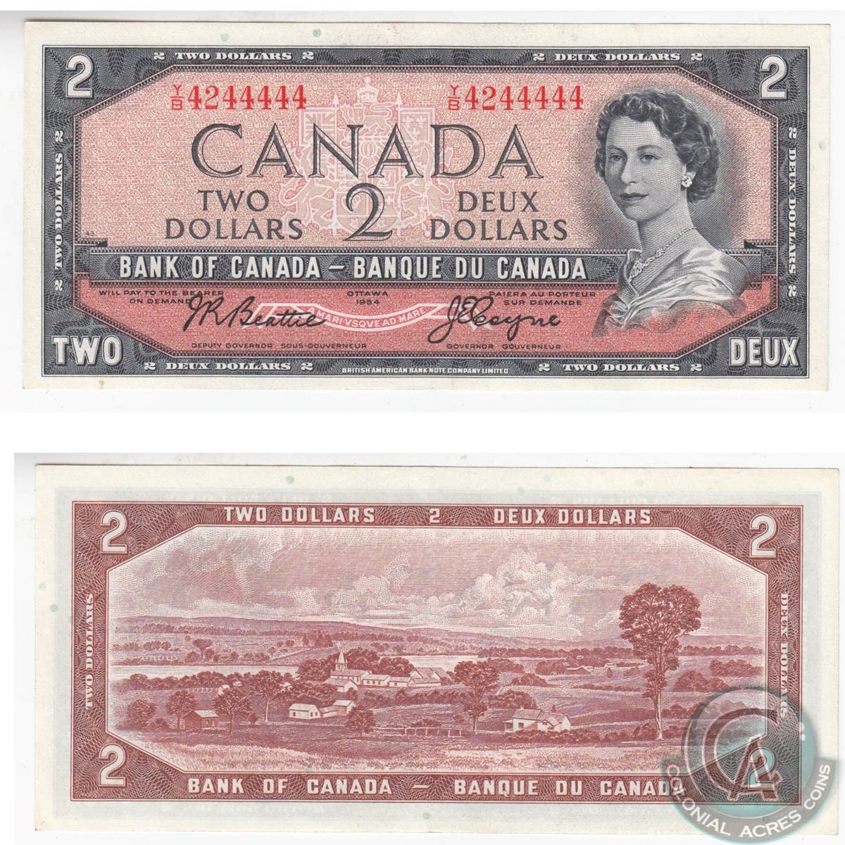 1954 $2.00 Note with a Serial Number that is almost all 4s.