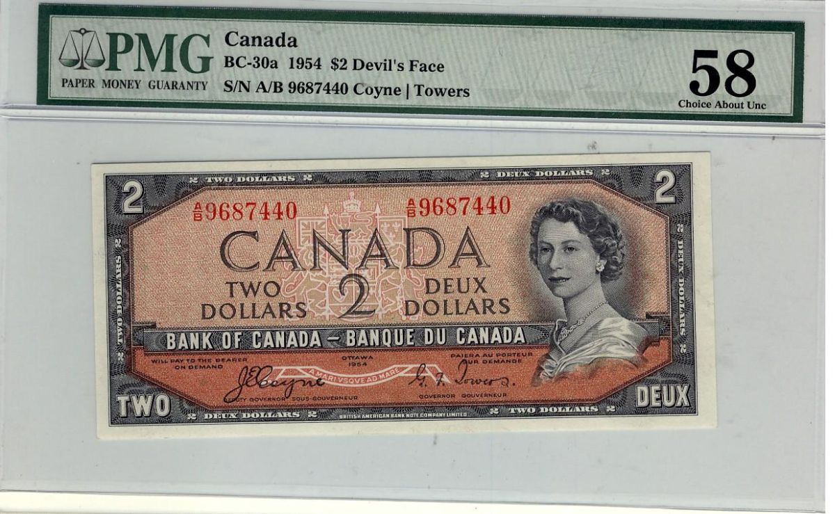 1954 $2 BC-30a #AB9687440, PMG AU58.