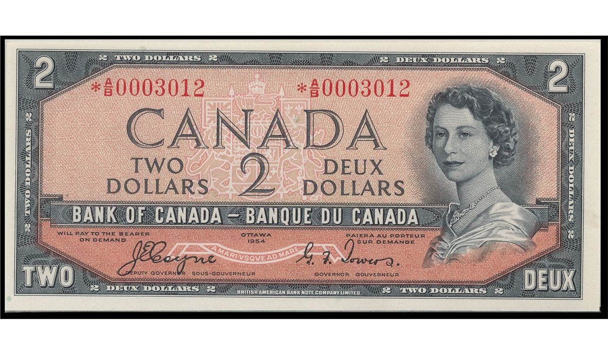 1954 $2 BC-30aA #*AB0003012. Rare DF replacement issue. Crisp CH UNC issue.