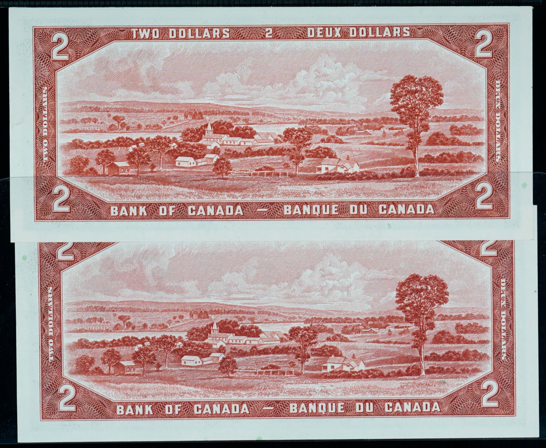 1954 $2 BC-30b #F/B5963391-3392. Lot of 2 consecutive Devil's Face notes in AU condition.