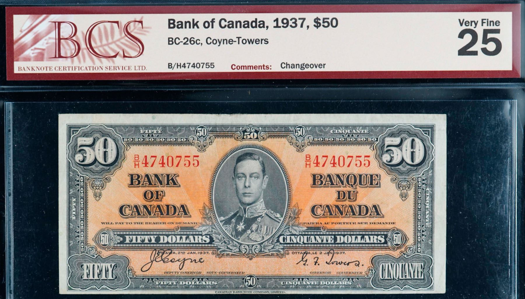 The cataloguer has taken every reasonable measure to ensure that all of the lots in this sale are as described and genuine. All raw coins and banknotes have been graded by the cataloger or the auction house which represent our best professional opinion. To grade coins and banknotes, we use Canadian grading standards, 42 years of experience and good conscience. However, grading is a subjective description in the opinion of the cataloger or the auction house. Among experts there are often differences of opinion on the grading and the eye appeal of a coin. The strike and the state of preservation are often debated. The Canadian Numismatic Company acts as an agent between consignors and buyers. The Canadian Numismatic Company does not guarantee that any coin or banknote cataloged will meet the standards, or the grade, of any third party grading companies. No warranty, whether impressed or implied. Items are as is, no warranty given. We cannot accept responsibility and waive all liability resulting in financial losses, and or incidentals accruing from the sale of any items, nor can we guarantee that items graded by third party services will grade the same if submitted to a different grading service or re-submitted to the same company. Statements by The Canadian Numismatic Company regarding the condition, the eye appeal, the strike and the population of items are for guidance only. All lots offered are sold "AS IS". Title to all lots remains with the auction house until paid for in full by the purchaser. But they are held at the risk of the purchaser once the time of the sale.