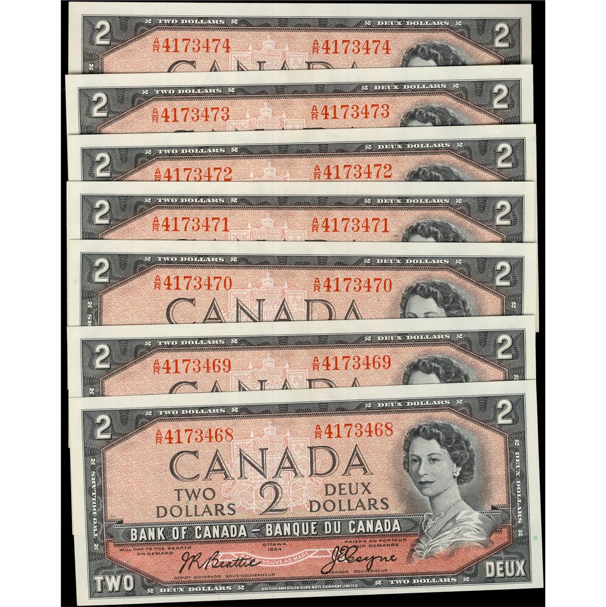 1954 $2 BC-38a #AR4173468-474. Lot of of 7 crisp original UNC notes.