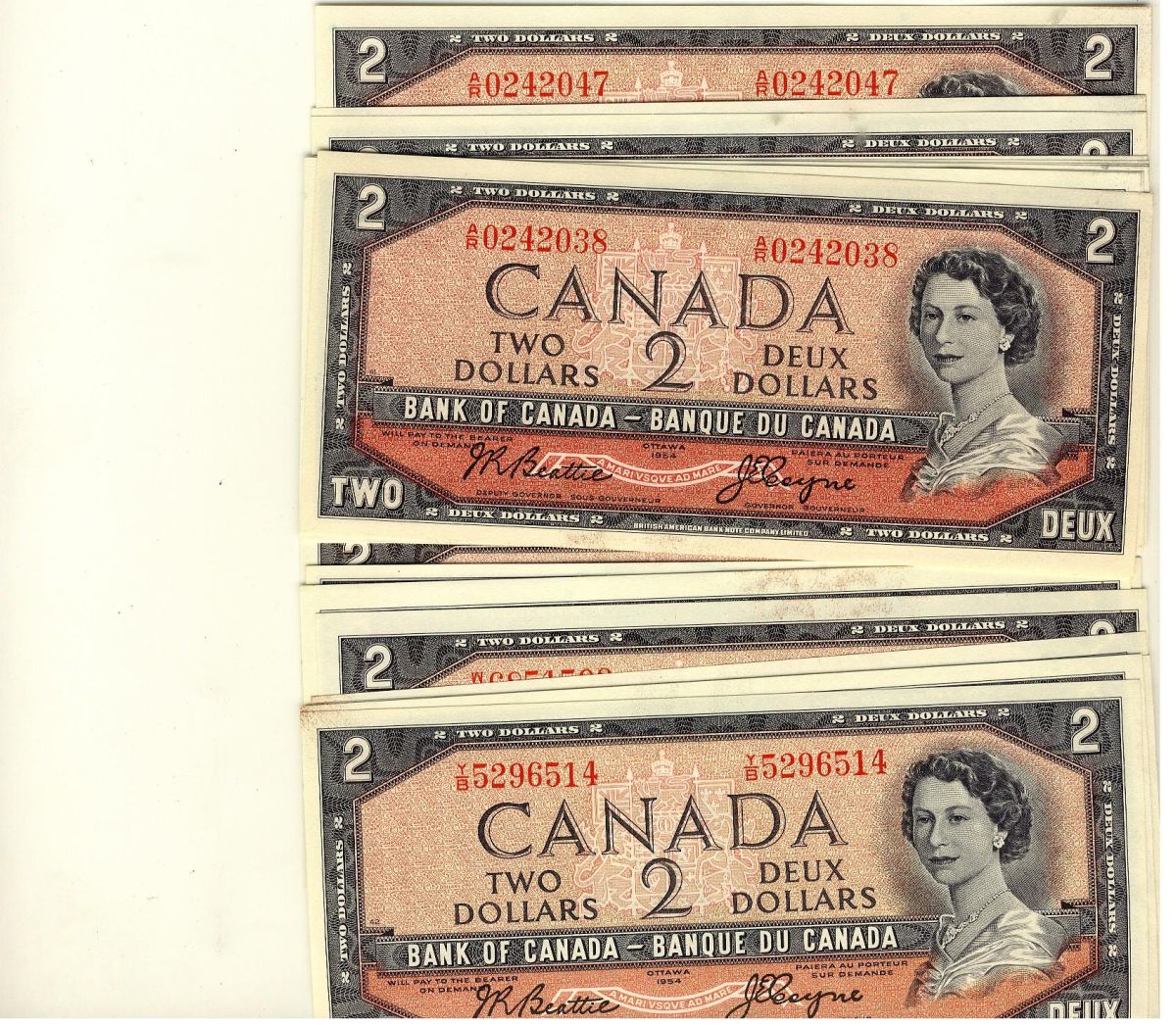 1954 $2 BC-38a Beattie-Coyne. Lot of 21 notes. All AU to Unc.