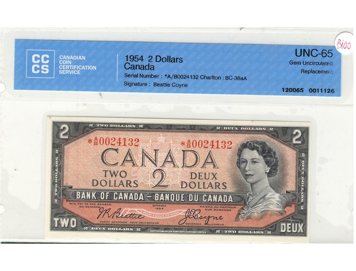 1954 $2 BC-38aA Replacement*A/B, CCCS UNC-65.