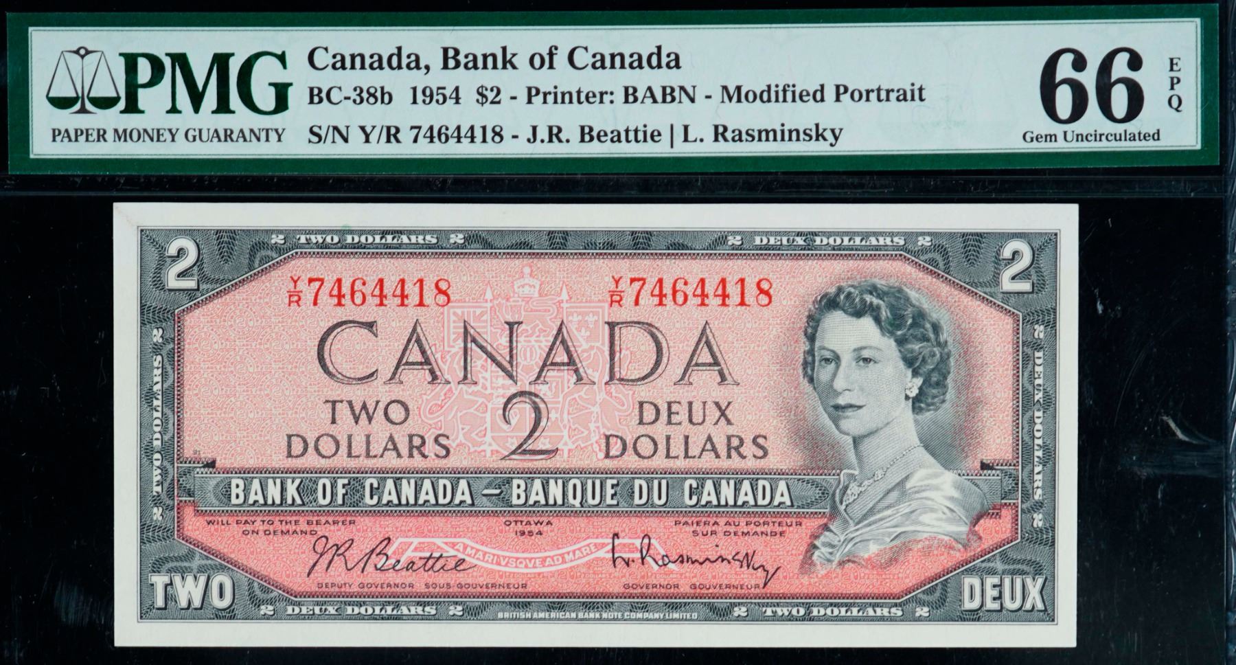 1954 $2 BC-38b #YR7464418, PMG Superb Gem Uncirculated-66EPQ.
